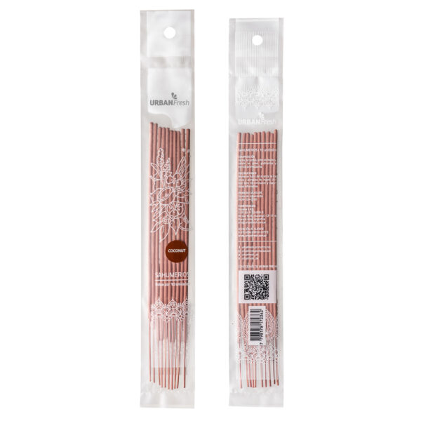 Bolsa con 10 sahumerios. Compuestos por varilla de bambú, polvo de madera, carbón en polvo, glutinantes y esencia aromatizante.